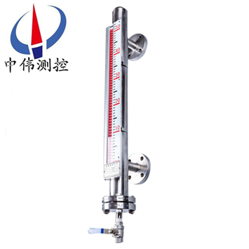 2、保溫型磁翻板液位計:該液位計是在基型的主體外安裝一個保溫夾套而構成通入蒸汽等熱媒劑。可以保持主體內液體的正常流動。因此適用于易凝固液體的液位測量和控制。對于低沸點液體可通入冷水等冷媒劑,以保證液位的穩定。使儀表正確指示出被測液位。