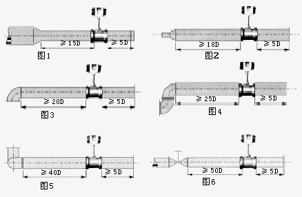 為了確保儀表正常、準確運行,傳感器安裝點的上下游須***有一定的直管道,以調整流場,如圖所示。